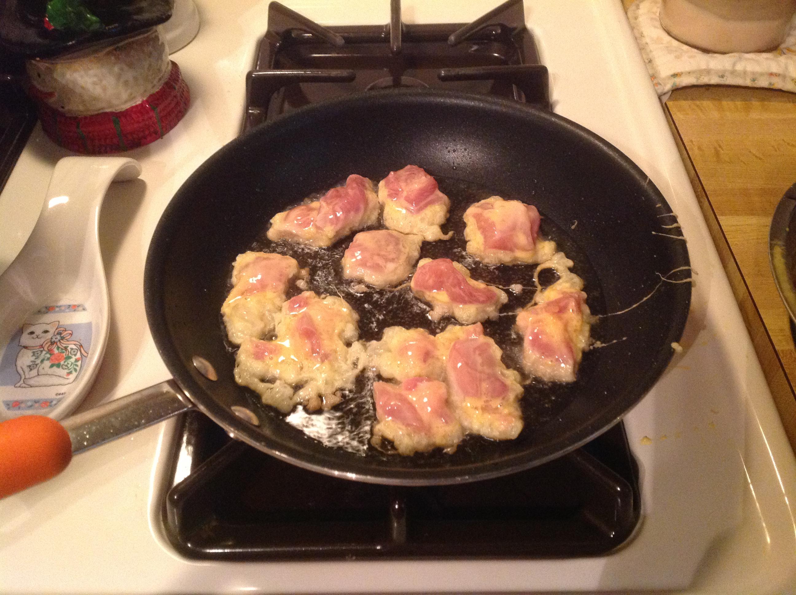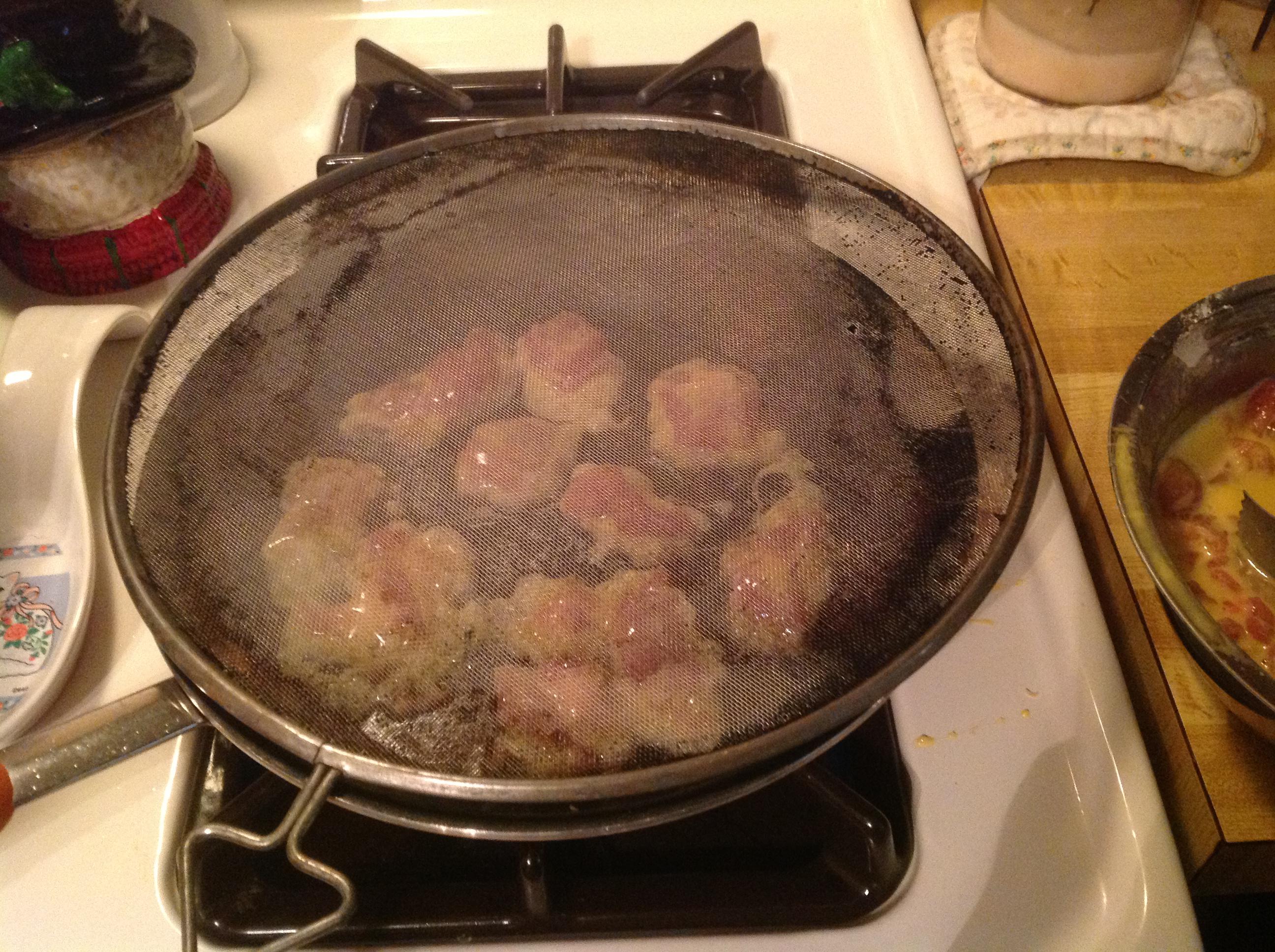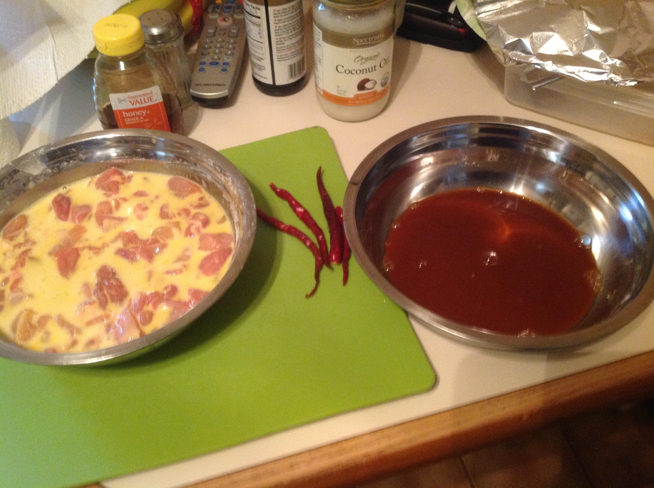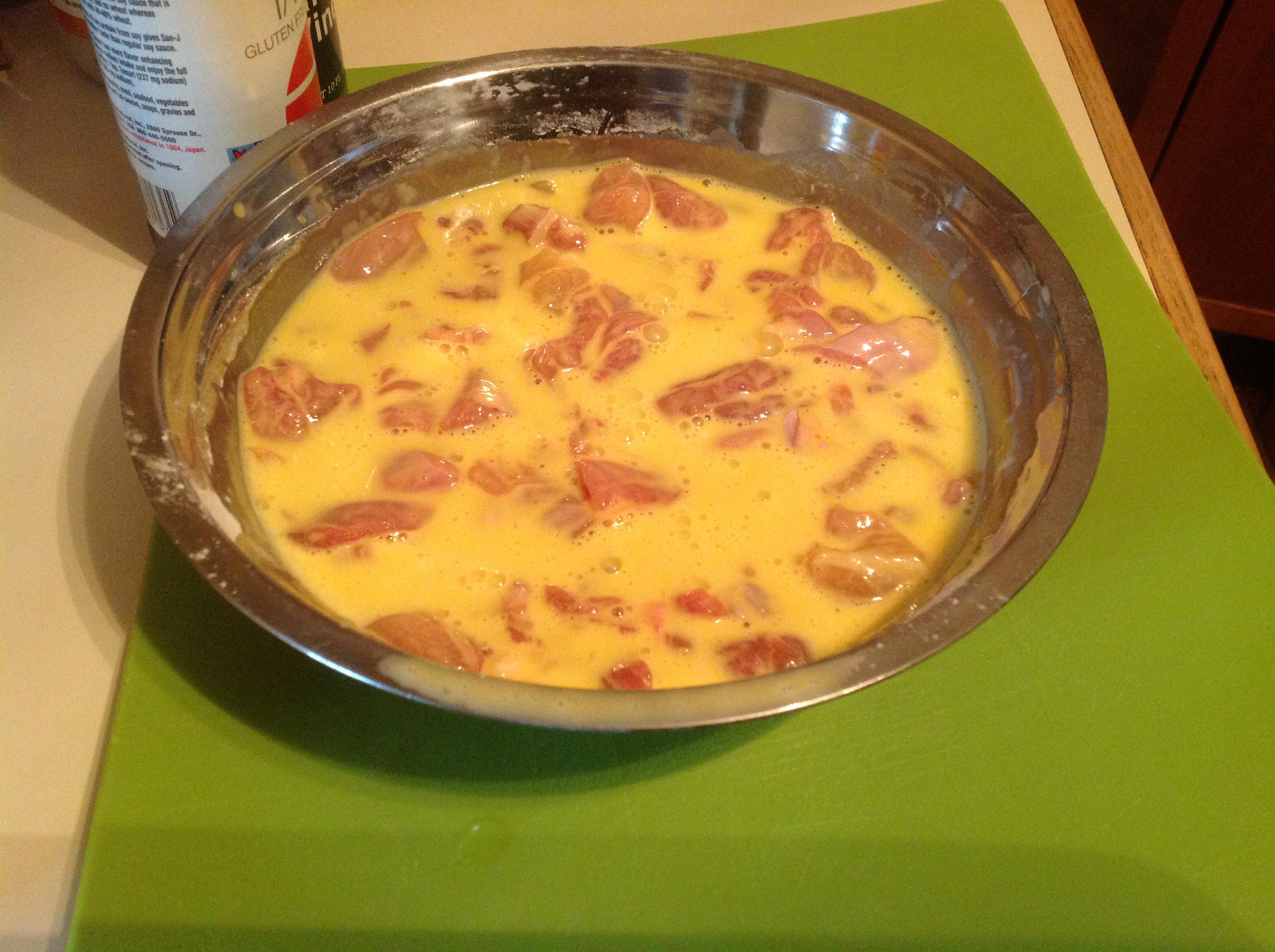 Dice the chicken into inch-size pieces and combine with the batter. I let this sit to the side for a bit while I prepared the sauce mixture. I feel like the longer the chicken hangs out in this batter, the more will adhere to the chicken during cooking. I could be completely wrong, but it just felt so right. 🙂