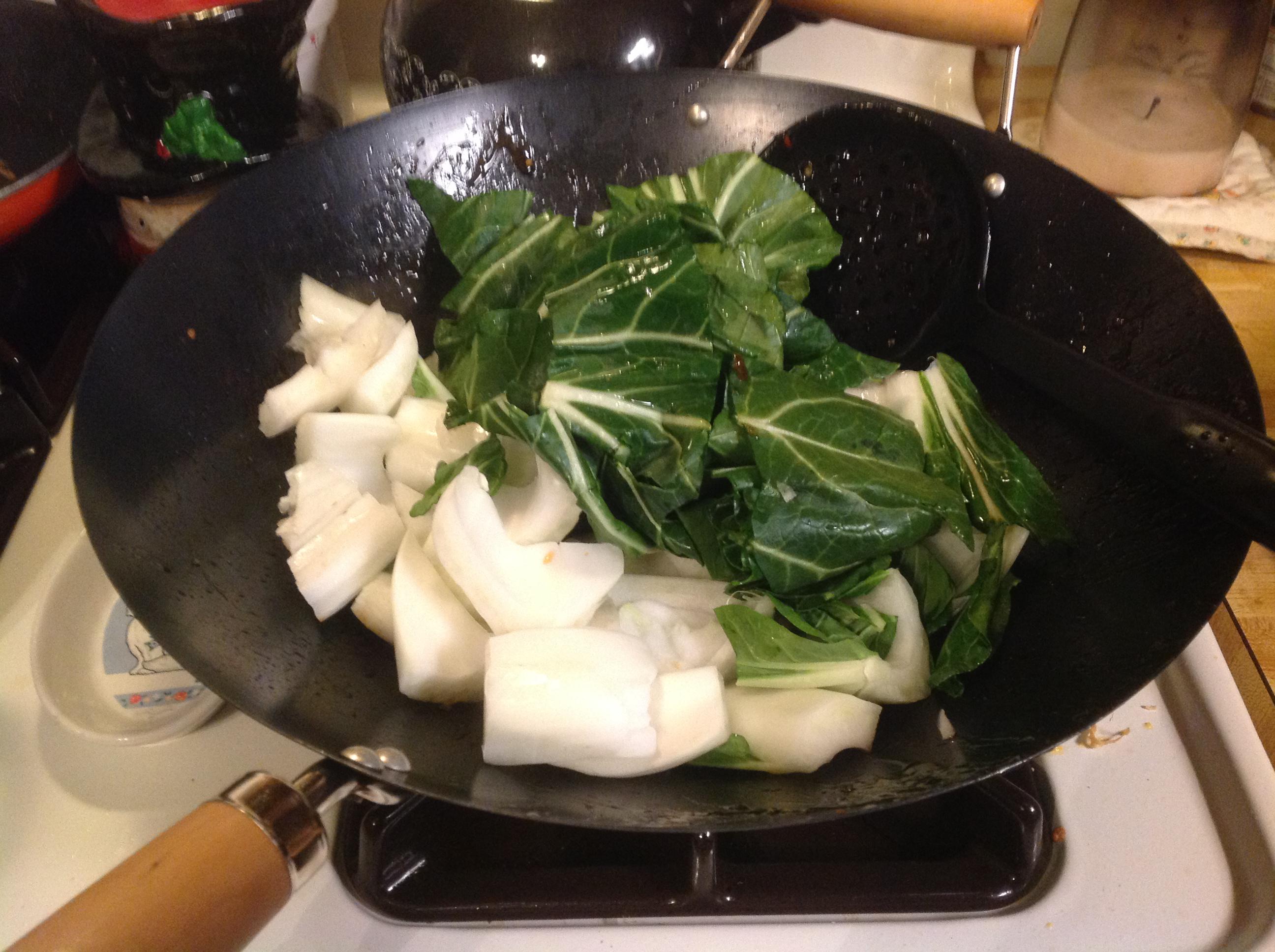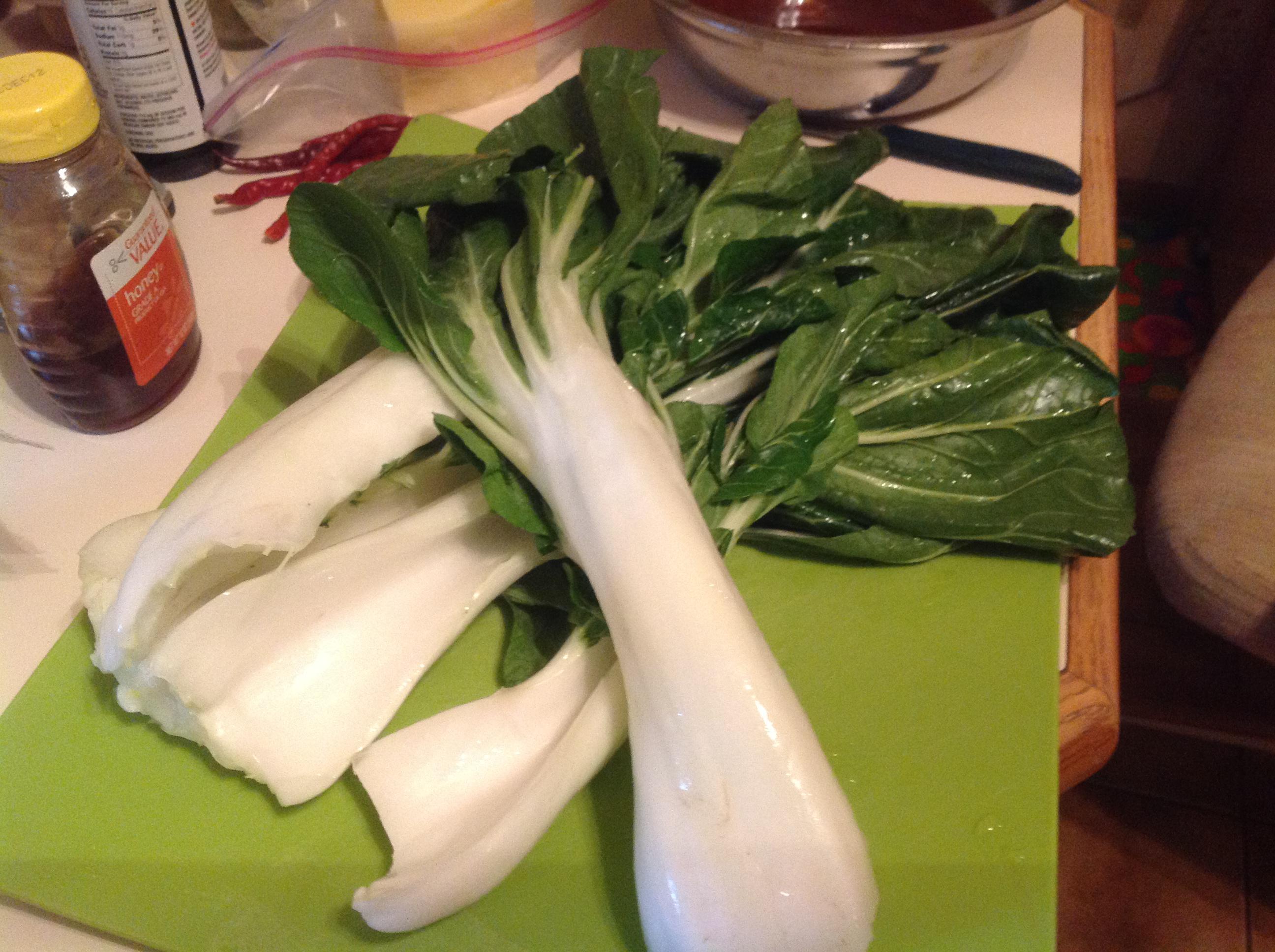 Give the bok choy a rough chop. Remember, small pieces = quick stir fry.