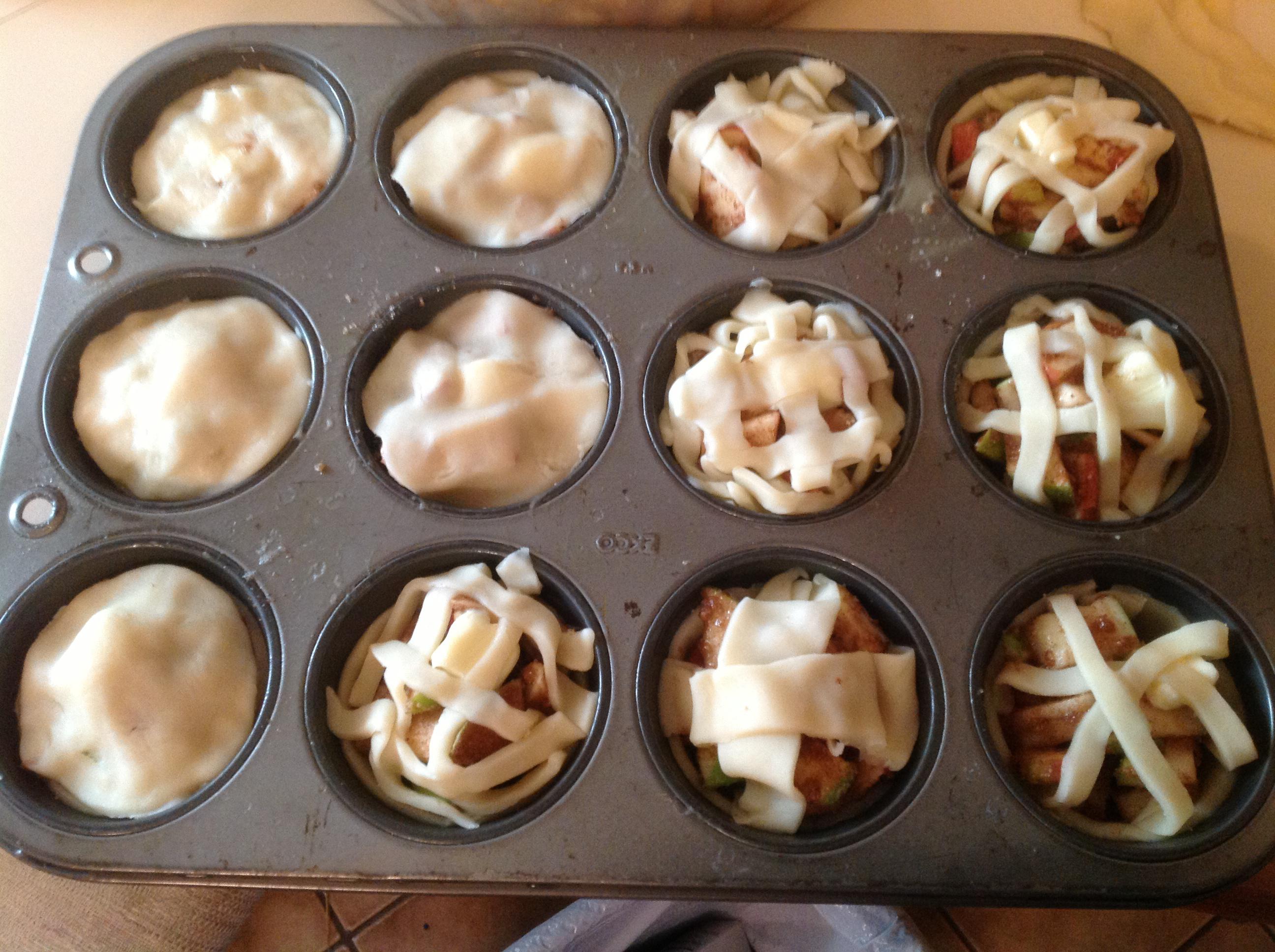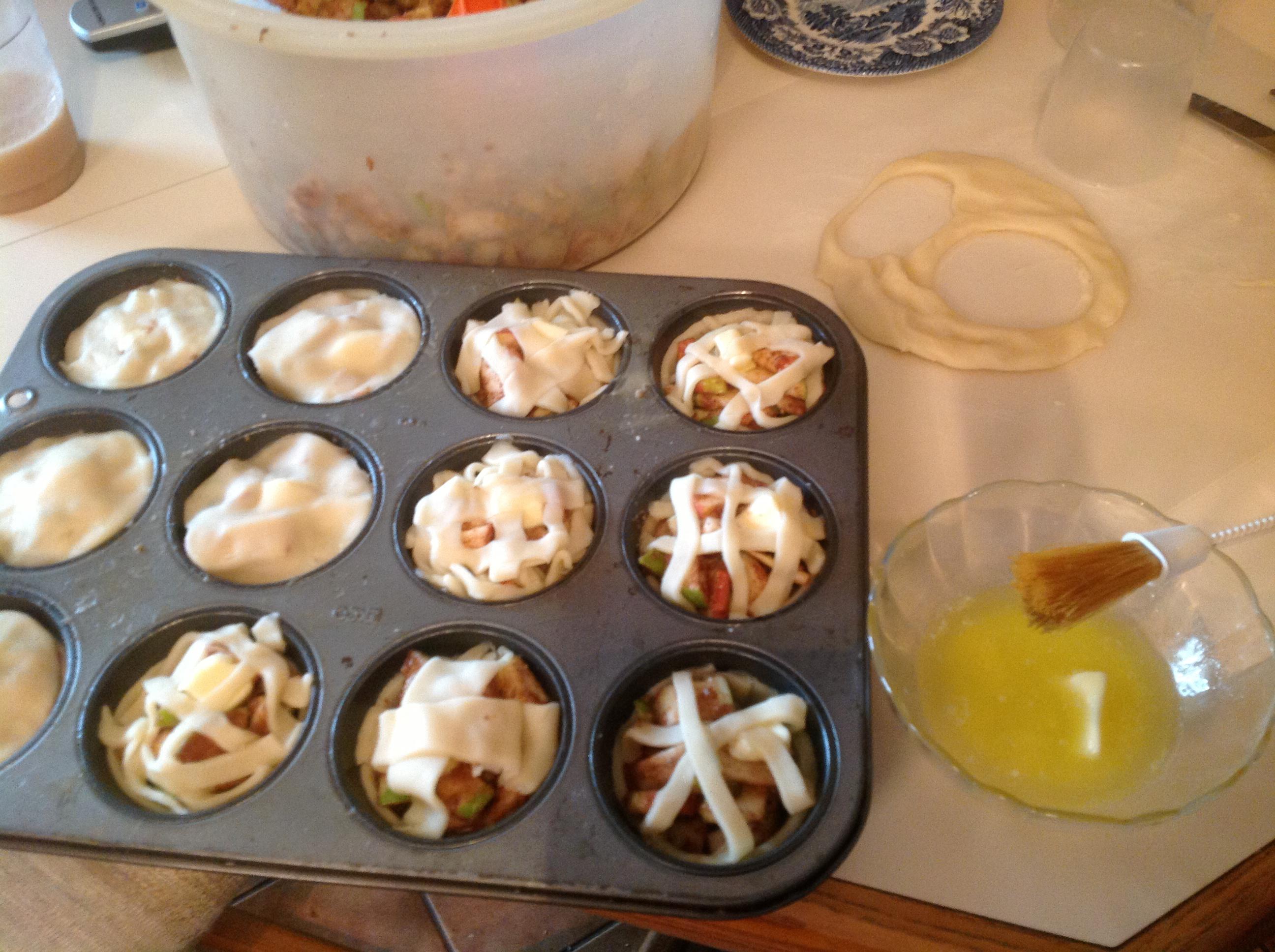 Here’s my first tray. Looks like a train wreck, doesn’t it!? I promise you they will bake up really nicely, regardless of how bad the pies look.
