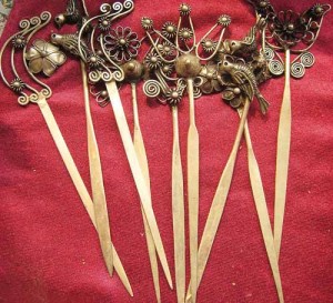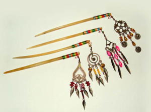 Twin hairpins are ornaments used to express love. Much like a woman throwing her scarf to a man for him to remember her by, “When lovers or couples parted in the old days, the women would pick up twin-hairpins from the hair, presenting one to her lover or husband while keeping the other with herself, till they were reunited” [4]. This reminds me of the grown-up version of those best friend charms that come in two pieces.