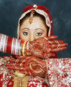 While American brides show off their bling to show commitment, Indian brides (and brides of 60+ other cultures) are adorned with beautiful henna patterns in dark colors to symbolize love and the strength of their upcoming marriage. This is great because it is accessible to both rich and poor, allowing those who couldn’t drape the bride in riches to still present her beautifully. The deeper the hue of the ink, the stronger the love of her husband.