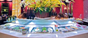 Texas de Brazil doesn’t have a menu and charges a flat rate for dinner. The price is a little less than $50 and includes the salad bar, unlimited meats, mashed potatoes, and fried bananas. That might sounds like a lot of money for dinner, but it is literally all you can eat! I know you’re probably thinking, oh, big deal. Dinner and salad bar? But the salad bar itself is a sight to be seen. It includes DELICIOUS lobster bisque, various cheeses and cured meats, cold salads, smoked salmon, sushi, vegetables, bread, rice, beans, potatoes, BACON, shrimp, and more mouth-watering choices. And that’s just the beginning! Once you fill up on the cold food and side dishes, the real feast begins. Ladies, listen up. Attractive knife-wielding men dressed as gauchos come to your table and offer you their meat. (Go ahead and giggle at the thought. I do!)