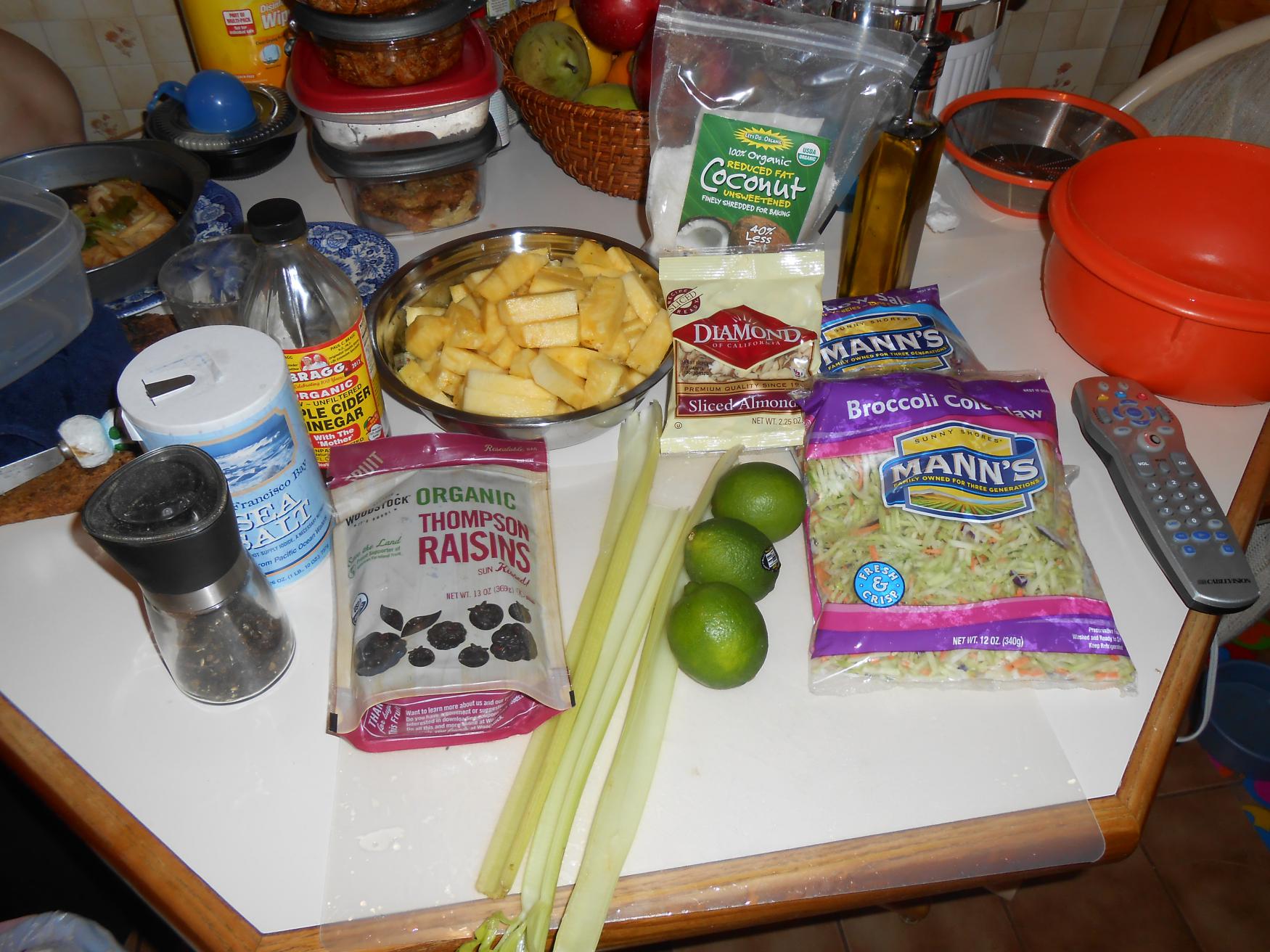 Step one: Gather all of your ingredients. This one is simple because almost everything is packaged. Dice your pineapple into bite size pieces, chop the celery thinly, and half the limes.