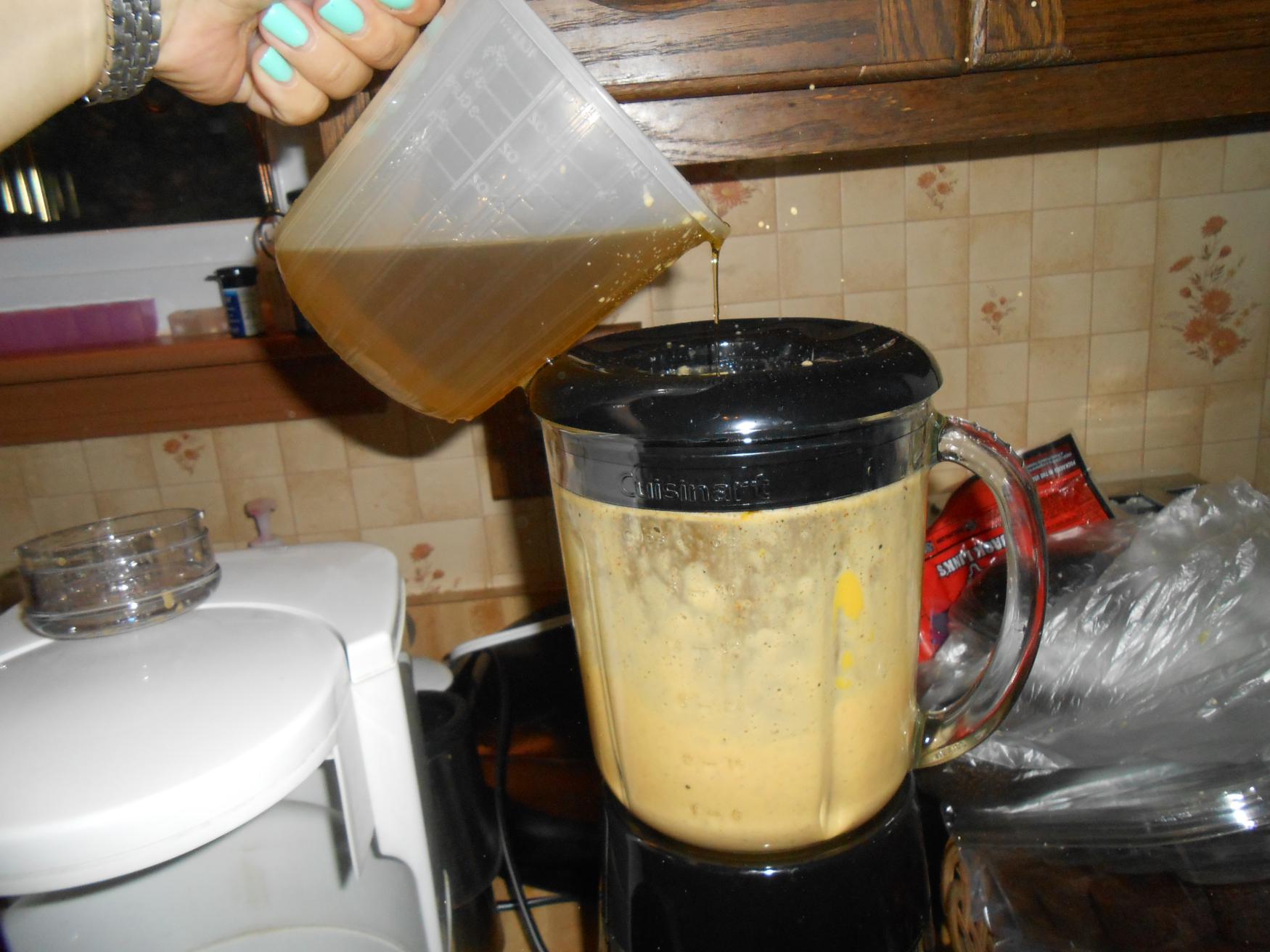 Now, continue to blend and add the olive oil VERY SLOWLY. This will allow the mayo to set up and thicken.