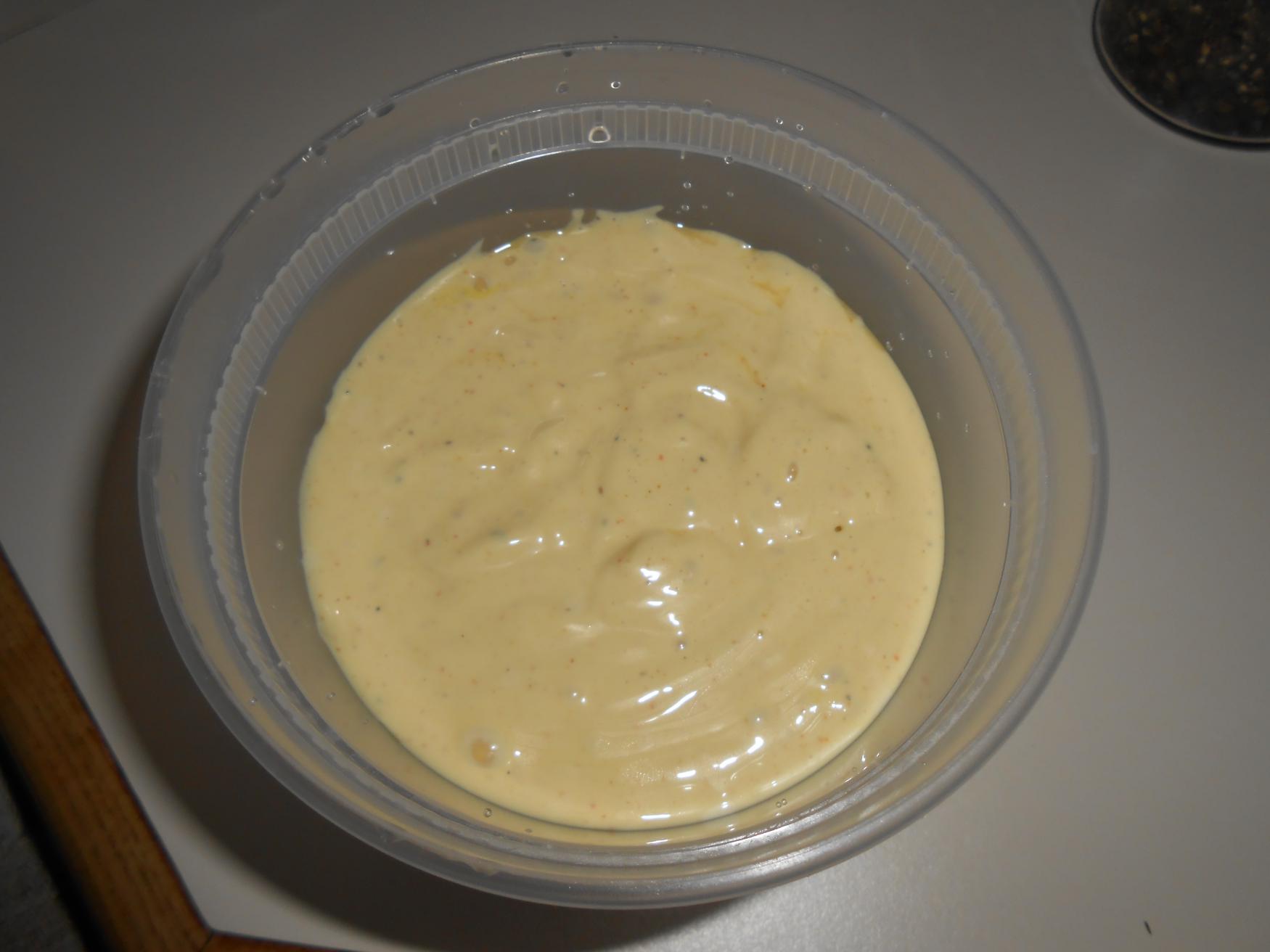 This yields four pancake size patties. I cooked them in two batches to make sure they browned evenly. Drain the finished cakes on paper towel. Next up: ginger mayo sauce! I want to forewarn you that this makes a LOT of mayo. I will give the full recipe below, but I would consider halving it.