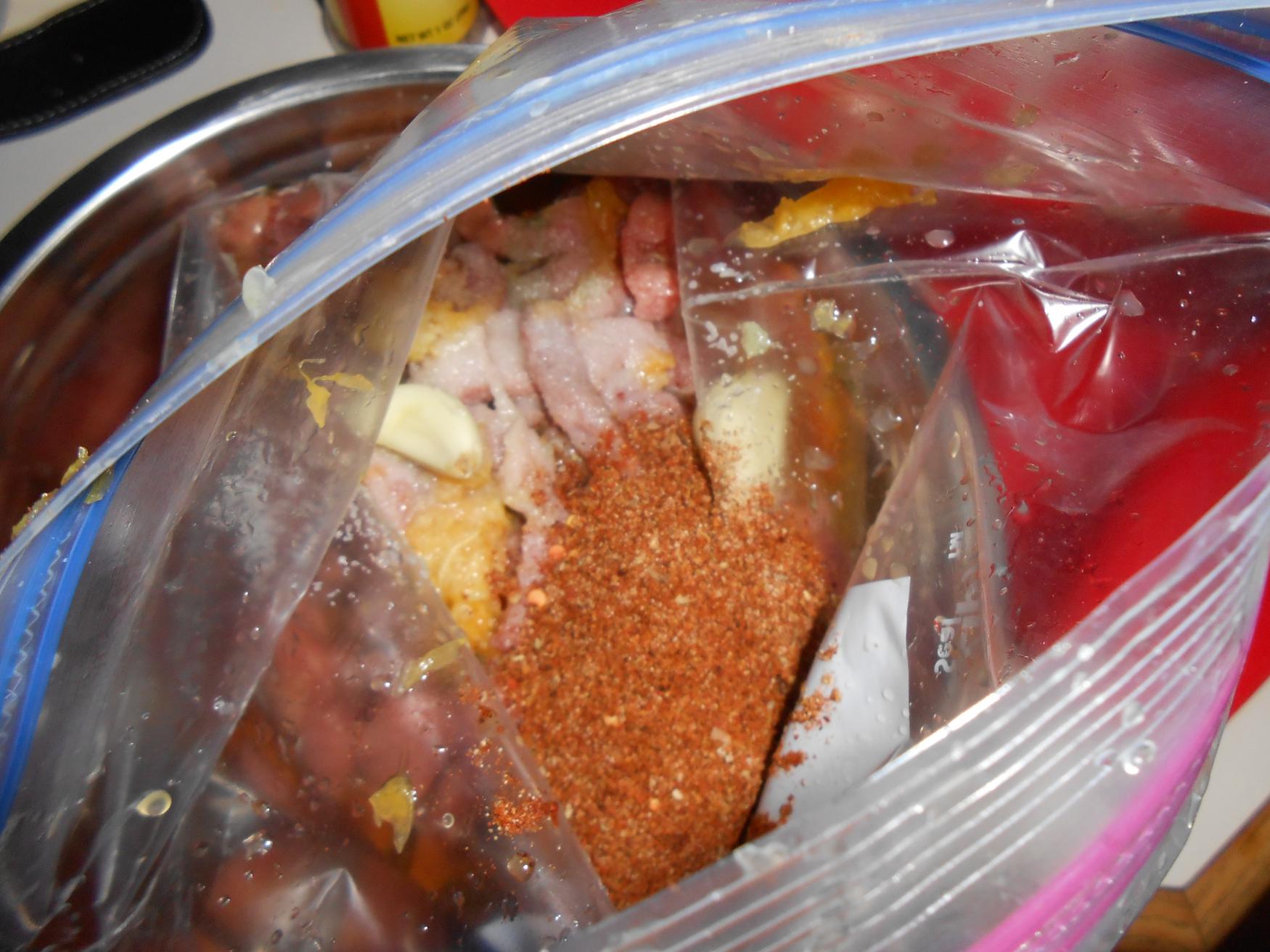 Seal the zip-lock bag and give everything a good mix until it looks like all the meat is coated with the spices and juices. Toss this in the fridge for at least 4 hours up to 24 hours.