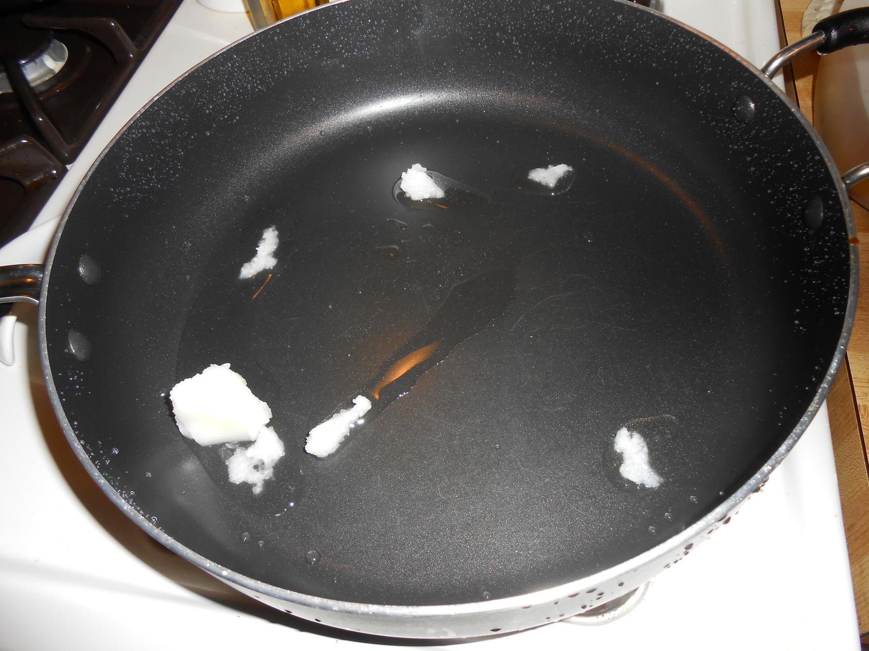 - Heat the fat of your choice (I used coconut oil) over medium/high heat in a large frying pan.