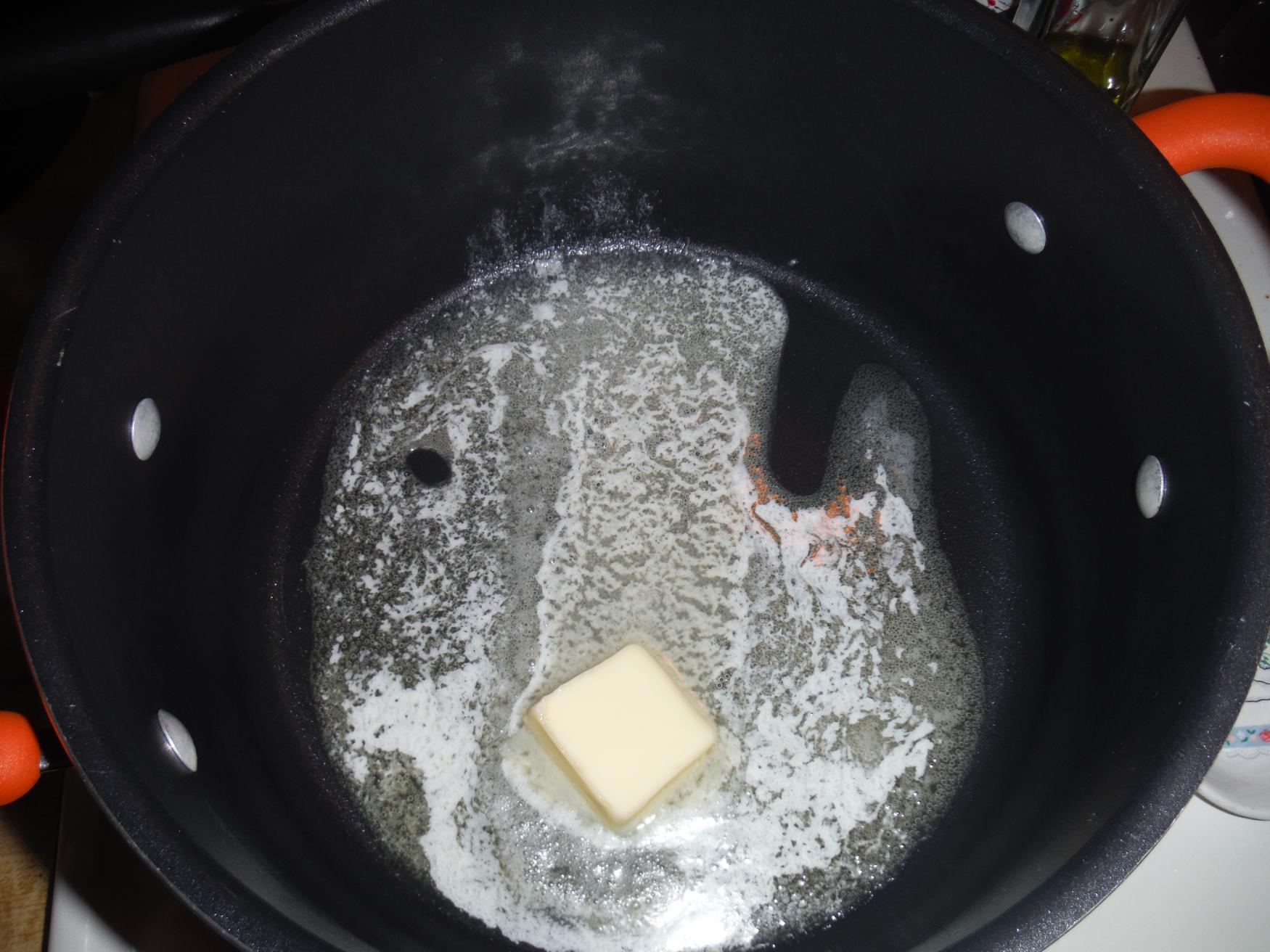 Melt the fat of your choice in a large soup pot. Is there anything more beautiful than a pot full of melted butter? Mmmmm.