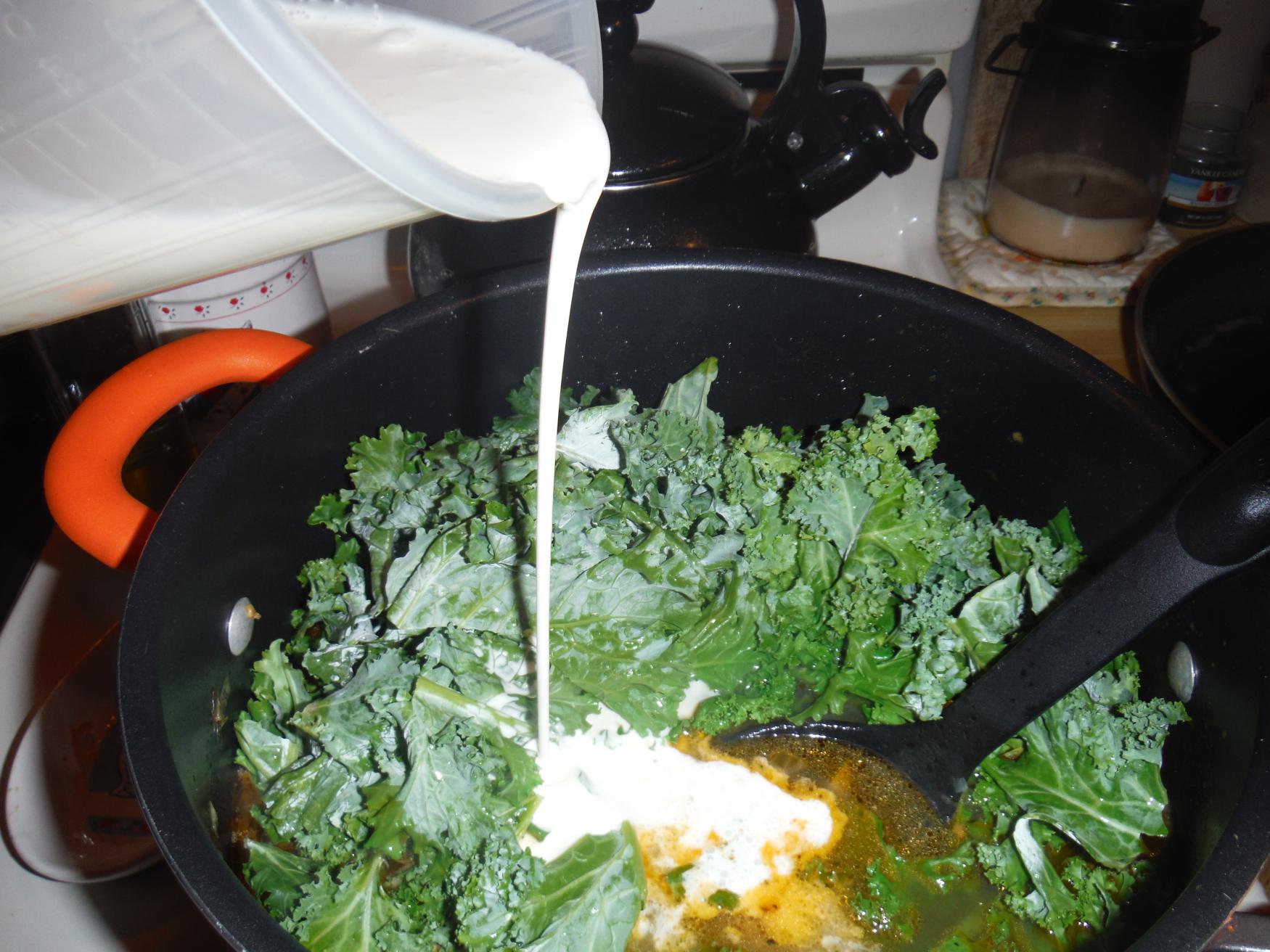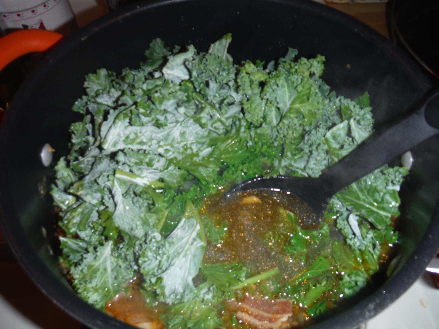 - Once boiling, add kale and cook until wilted.