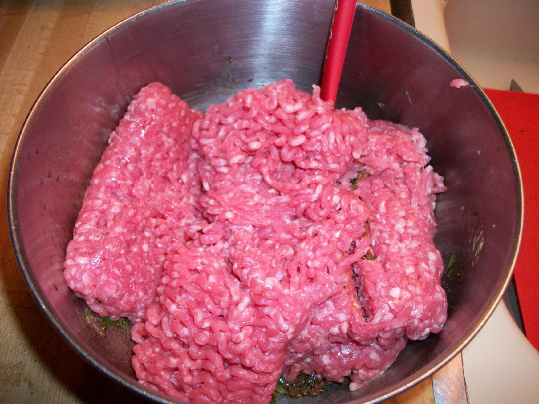 Mix the pork into the spice, egg, and mustard mixture. You can either mix with a spoon or your hands if you’re in the mood to get a little dirty 🙂 Do not over-mix or the meat will become tough.