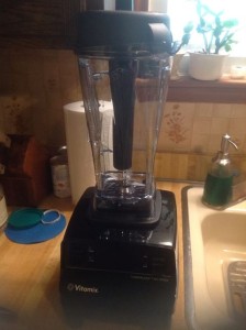 My father was lucky enough to retire last spring from a job he had been at for more than 30 years. One of his retirement perks included choosing a “parting gift” from a catalog. Lucky for me, he didn’t want anything from it so I got a Vitamix! Huzzah! Look at it in all of its glory and splendor.