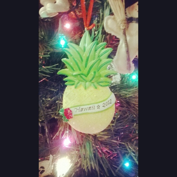 My favorite ornament, of course! We bought this at the Dole Cannery when I was in Waikiki to present my thesis at the Hawaiian International Conference