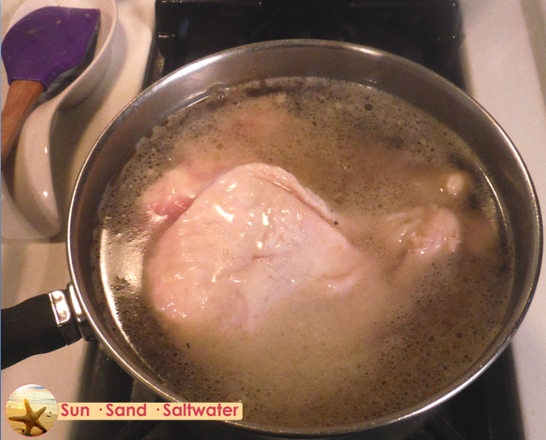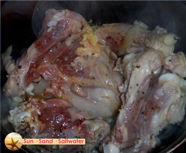 Add chicken bones or chicken thighs and cook for about 5 minutes.