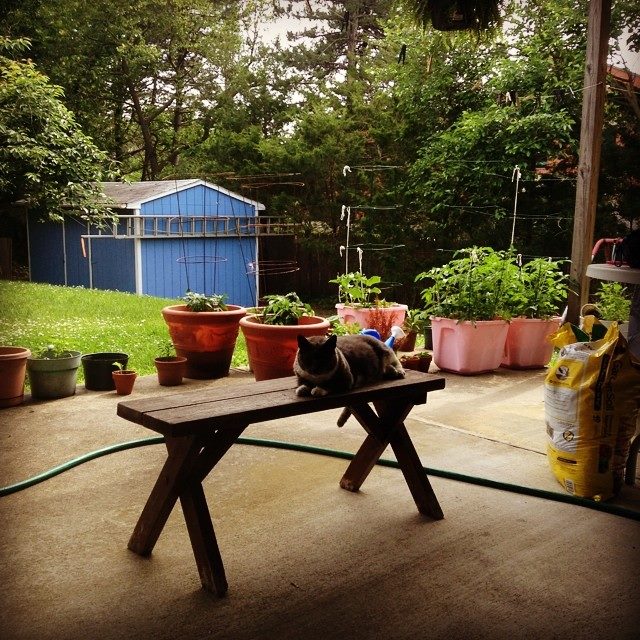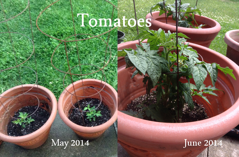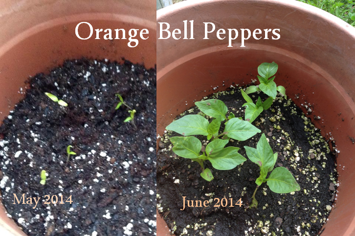 After all was said and done, the seedlings didn’t really produce anything that lived – except for one cantaloupe, one spaghetti squash, and all four orange bell peppers! It was odd that they survived because my green and red bells never sprouted. The rest of the plants I bought from a local nursery. I planted the containers in mid-May and the growth so far has been lovely! See below for my May to June before and after photos. I’ll keep you posted as the summer progresses!