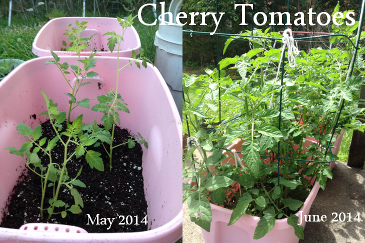I usually grow my cherry tomatoes cage-free, but this year I am testing it out. I am hoping the wire will keep it in line and allow it to grow taller. Also, I used some rope to help guide the plants upward and away from each other. Makes it easier to harvest.