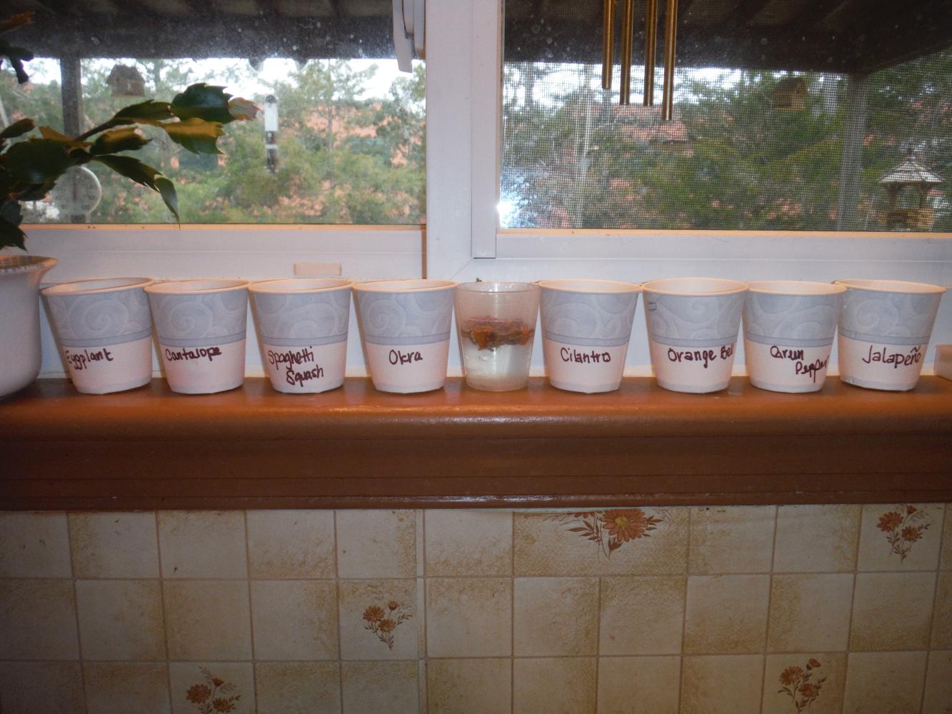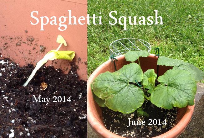 Surprisingly, my spaghetti squash and cantaloupe were first to sprout. The seedlings were thin and tall and unfortunately not very hearty. I transplanted them when the weather was consistently above 60, but they didn’t make it. Only one spaghetti squash seed clung to life!