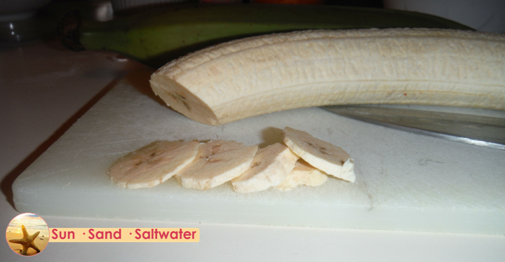 Once you slice each plantain, set aside and heat the coconut oil.