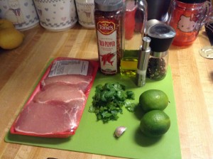 Ahhh summer. Sunny days, warm nights, and most importantly – it’s grilling season! Cooking on the grill is great for people who hate cleaning up the kitchen – like me! You can cook almost anything on the grill – including cakes and muffins, but I’m not that advanced yet. Today’s recipe is cheap, quick, and delicious: Cilantro Lime Pork Chops! Let’s get to it!