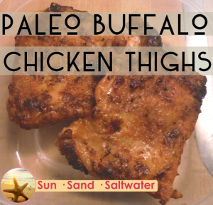 Happy Wednesday! Today, I have a recipe sure to please any buffalo chicken fan. Since going Paleo, there’s one thing I crave and rarely eat on cheat days – buffalo wings! Arguably, real buffalo chicken wings are Paleo – assuming they are not breaded before frying. Boneless buffalo wings from Applebee’s was my guilty pleasure and the real deal chicken wing doesn’t come close. Something about the crispiness of the breading mixed with the thick sauce makes my mouth water. So to supplement my crunchy-saucy cravings, I came up with these buffalo chicken thighs!